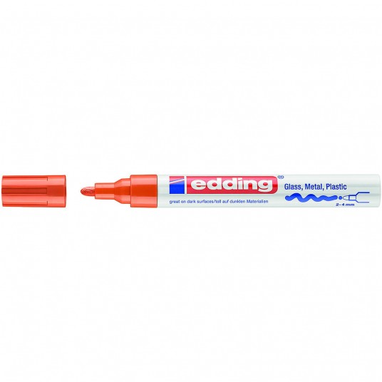 - Połyskujący marker olejowy do trwałego, wysoce kryjącego, odpornego na ścieranie pisania i dekorowania gładkich powierzchni - również ciemnych lub transparentnych, np. szkła, metalu, plastiku i szkła powlekanego - Okrągła końcówka pisząca o szerokości 2-4 mm - Pigmentowy tusz przypominający farbę jest szybkoschnący, odporny na zmienne warunki atmosferyczne, wyjątkowo odporny na działanie światła i na ścieranie - Zapasowe końcówki (wymienne końcówki do edding 750) są dostępne - Bezwonny tusz bez dodatku toulenu/ksylenu - Wysokiej jakości aluminiowa obudowa - Kolor: pomarańczowy