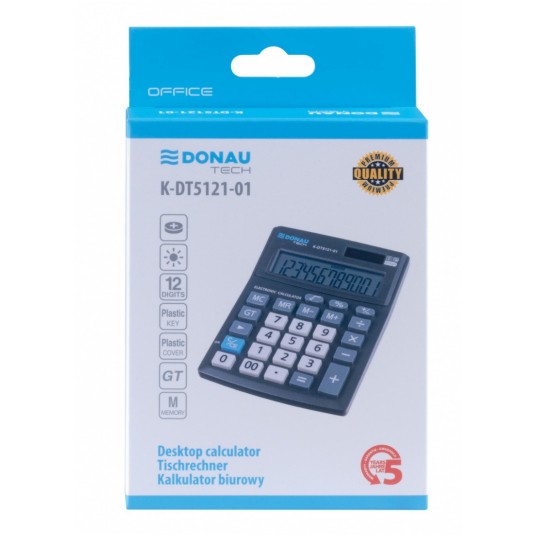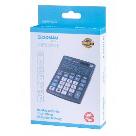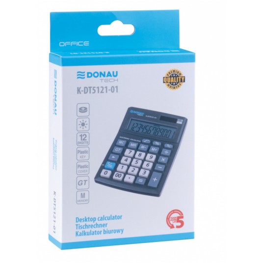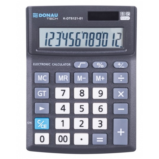 Kalkulator biurowy DONAU TECH OFFICE, CI-CMB1201BK, 12-cyfr. wyświetlacz, wym. 137x101x30mm, czarny