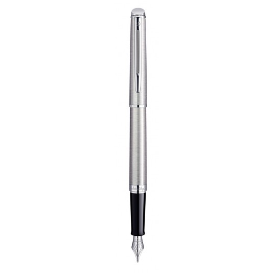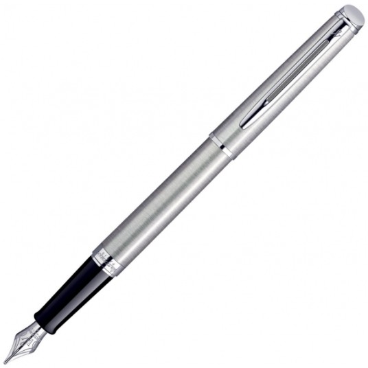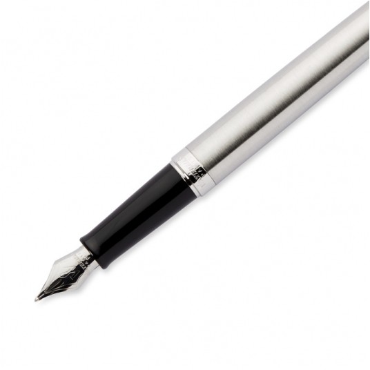 Prosty, klasyczny kształt. Pióro wykonane z delikatnie szczotkowanej stali o przepięknym satynowym połysku. Wykończenia powleczone palladem, Stalowa stalówka w rozmiarze F (cienka). Przystosowane do naboi atramentowych.