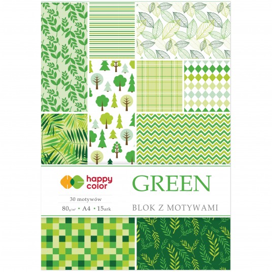 Blok z motywami green, A4, 80g/m2, 15 arkuszy, 30 motywów, Happy Color