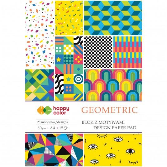 - Blok z motywami do tworzenia tematycznych dekoracji - Wszystkie motywy w bloku dopasowane tak, aby można było je dowolnie łączyć i tworzyć oryginalne kompozycje - Idealne do zabawy z dziećmi - Do tworzenia dekoracji i zaproszeń tematycznych - Zastosowanie: laurki, obrazki, dekoracje - Gramatura: 80 g/m2 - 15 arkuszy - 28 motywów - Format A4 - Motyw: Geometric