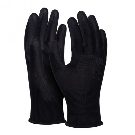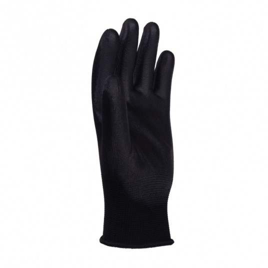 - Rękawice wykonane z dobrej jakości dzianiny poliestrowej w kolorze czarnym, powleczone w części chwytnej czarnym poliuretanem - Przeznaczone do prac montażowych, magazynowych, mechanicznych, elektrotechnicznych, serwisowych, malarskich, remontowych, przemysłowych, ogrodowych oraz zajęć hobbistycznych - Powłoka z czarnego poliuretanu o wysokiej odporności na ścieranie - Zakończone elastycznym ściągaczem - Rękawice ochronne chroniące przed uszkodzeniami mechanicznymi - Kat: II - Zgodność z normami EN 388:2016+A1:2018 (4131X), EN ISO 21420:2020 - Ścieg: 13g - Materiały: poliester/poliuretan - Kolor: czarny - Rozmiar: 10