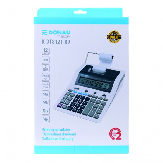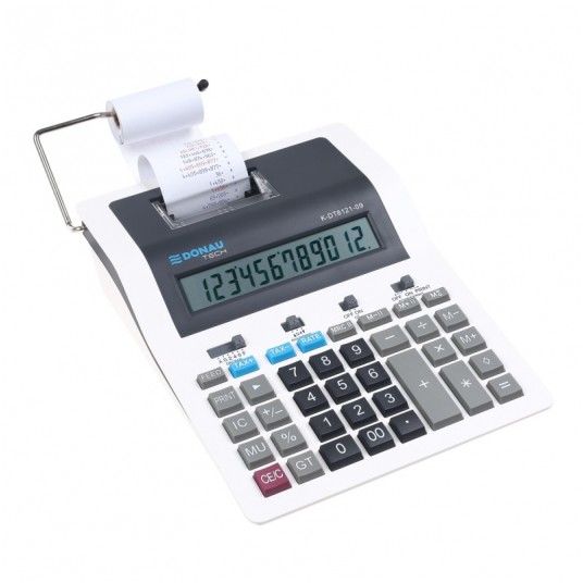 Kalkulator drukujący Donau Tech 12-cyfrowy wyświetlacz 267x202x77 mm biały
