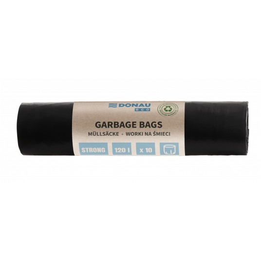 niezwykle wytrzymałe i rozciągliwe worki na śmieci wykonane w 100% z materiału pochodzącego z recyklingu (LDPE) posiadają Zielony Punkt (Der Grüne Punkt) - udział w systemie recyklingu i odzysku odpadów wynikający z przepisów prawa polskiego i UE z certyfikatem Blue Angel wyprodukowane w UE pojemność: 120l grubość folii: 35 µm 10 sztuk w j.s. kolor: czarny