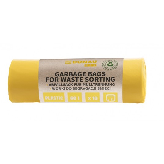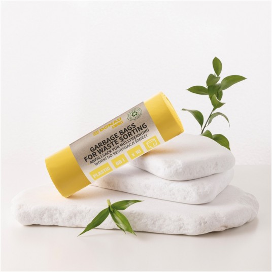 niezwykle wytrzymałe i rozciągliwe worki na śmieci przystosowane do segregacji odpadów plastikowych wykonane w 100% z materiału pochodzącego z recyklingu (LDPE) posiadają Zielony Punkt (Der Grüne Punkt) - udział w systemie recyklingu i odzysku odpadów wynikający z przepisów prawa polskiego i UE z certyfikatem Blue Angel wyprodukowane w UE pojemność: 60l grubość folii: 28 µm 10 sztuk w j.s. kolor: żółty