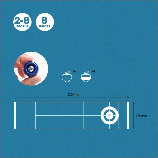 gra zręcznościowa zestaw do curlingu z lekkim, zwijanym torem składana, kompaktowa zabawka jest idealna do zabrania wszędzie ze sobą zestaw zawiera: zwijany tor oraz 4 niebieskie i 4 czerwone „kamienie” z metalowymi wkładami zapewniającymi dobry poślizg gra dla 2 do 8 graczy przeznaczona dla dzieci od 6 lat i dorosłych wymiary opakowania: 37 x 7 x 7 cm