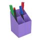 przybornik na biurko, niezbędny do podstawowej organizacji akcesoriów biurowych trwały i stabilny wykonany z odpornego na pęknięcia tworzywa z czterema przegrodami o głębokości 90 mm i 110 mm wymiary: 75 x 75 x110 mm kolor: fioletowy
