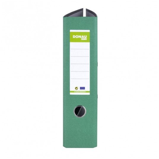 ekonomiczny segregator wykonany z tektury o grubości 2,2mm i gramaturze 1400gsm, wyposażony w dolną listwę wzmacniającą wewnątrz wyklejka papierowa o szarym zabarwieniu metalowy mechanizm i metalowa dźwignia wysokiej jakości z dociskaczem wzmocniony otwór na palec szerokość grzbietu: 80mm wymiary: 80x320x300 mm 5 lat gwarancji na mechanizm dźwigniowy opakowanie 10 szt. kolor: zielony