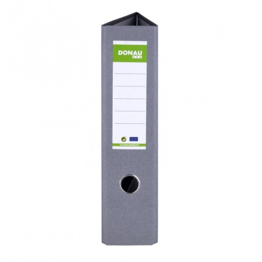 ekonomiczny segregator wykonany z tektury o grubości 2,2mm i gramaturze 1400gsm, wyposażony w dolną listwę wzmacniającą wewnątrz wyklejka papierowa o szarym zabarwieniu metalowy mechanizm i metalowa dźwignia wysokiej jakości z dociskaczem wzmocniony otwór na palec szerokość grzbietu: 80mm wymiary: 80x320x300 mm 5 lat gwarancji na mechanizm dźwigniowy opakowanie 10 szt. kolor: szary