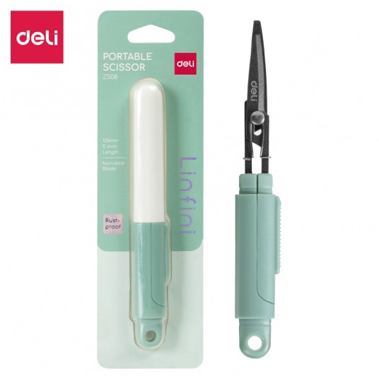 - Kompaktowe nożyczki w bezpiecznym etui Deli Linfini EZ508 - Długość 125 mm - Ostrza ze stali nierdzewnej zapobiegające przyklejaniu się materiału - Ergonomiczne, symetryczne uchwyty z plastiku ABS - Zaokrąglone końcówki dla bezpieczeństwa - Antykorozyjne – odporne na rdzę - Poręczny rozmiar – łatwe do przenoszenia - Zapakowane w blister - Idealne do prac biurowych, szkolnych i domowych - Kolor: zielony