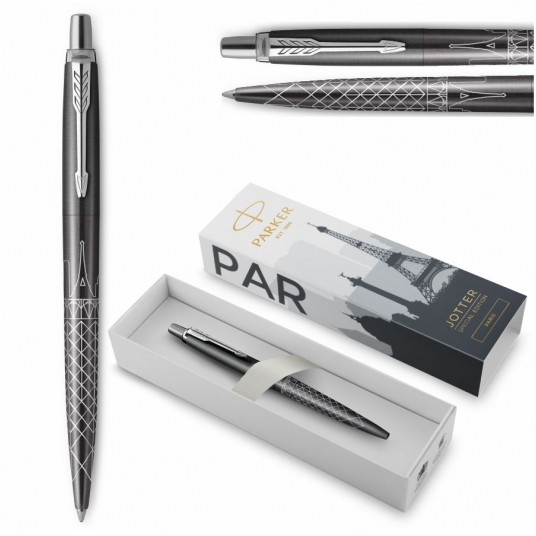 - Edycja Specjalna Jotter Global Icons - Najnowsza kolekcja 2. Edycji Specjalnej Jotter czerpie inspirację z miast całego świata - Ósmy długopis z serii Global Icons oddaje romantyzm i szyk Paryża - Jego wyróżniająca linia szczytów słynnych budynków wyznacza wzór mistrzowsko naniesiony laserem na ciemnoszary korpus - To doskonały towarzysz podróży, zapewniający inspirację dla Twojej kolejnej wyprawy - Nasadka: stal szlachetna z lakierem w kolorze ciemnoszarym - Korpus: stal szlachetna z lakierem w kolorze ciemnoszarym - Wzór: grawerowana laserowo panorama Paryża - Klip: stal szlachetna - Opakowanie: specjalnie zaprojektowane opakowanie prezentowe - Długopis uzupełniany oryginalnymi wkładami Parker do długopisów i długopisów żelowych