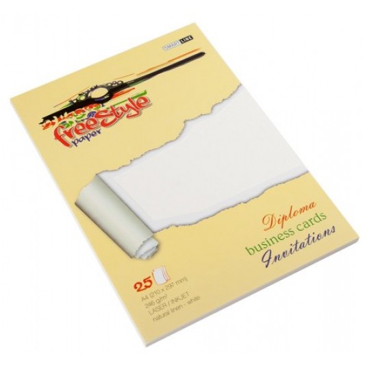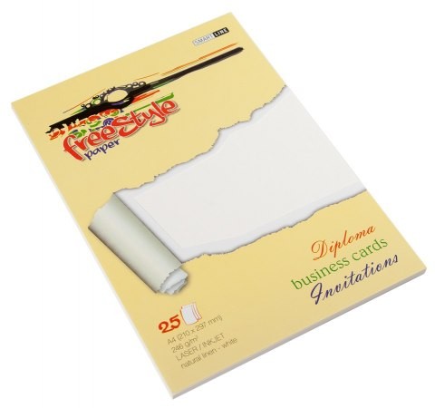 - Elegancki papier do druku wizytówek, zaproszeń, menu, dyplomów, certyfikatów or innych druków kreatywnych - Format A4 - 25 arkuszy kartonu - Kolekcja FreeStyle Paper zawiera 39 rodzajów papierów ozdobnych w 13 fakturach i 7 lśniących kolorach - Papiery przeznaczone są do druku atramentowego (za wyjątkiem papierów metalizowanych) oraz laserowego - Uzupełnieniem kolekcji są koperty ozdobne występujące w różnych formatach (C4, C5, C6,DL, Q)