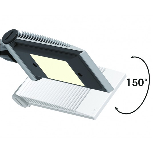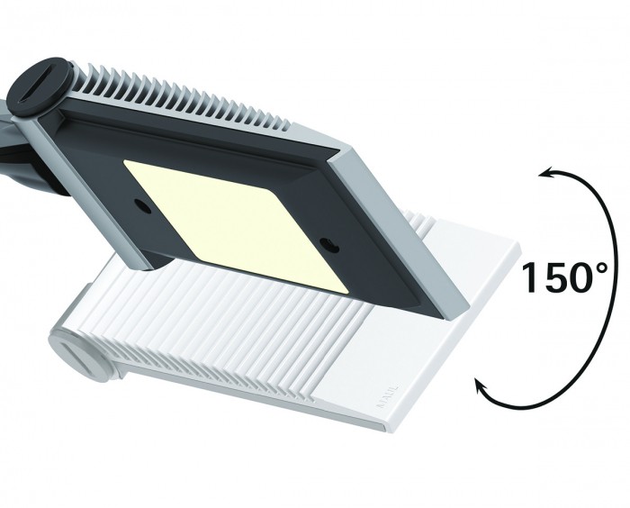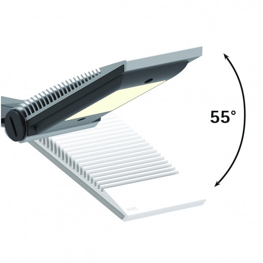 - Futurystyczny design zaprojektowany przez „Reutershahn” - Posiada wysokowydajne i nowoczesne żarówki LED w barwie „światła dziennego” (6500K) - Natężenie światła 2000 Lux z odległości 25cm, 460 Lumen - Cykl życia LED: ponad 30.000 godzin - Klasa energetyczna „A” (ważona konsumpcja energii 10 kW/1000h) - 80% niższy pobór energii w stosunku do tradycyjnych rozwiązań - Posiada indywidualną i elegancką regulację natężenia światła - Głowica (12x5cm) wykonana z anodowego aluminium, z możliwością regulacji w pionie o 150° i w poziomie o 55° - Regulacja wysokości w zakresie 25-62cm - Stabilna podstawa z wewnętrznym obciążeniem - Napięcie 220-240V - Długość przewodów przyłączeniowych: 1,9m - Produkt nagrodzony w 2010 roku przez ISPA (International Stationery Press Association) - Artykuł wyróżniony tytułem Najlepszego Produktu 2015 Roku podczas XI Forum IPBBS - 3 lata gwarancji - Kolor srebrny