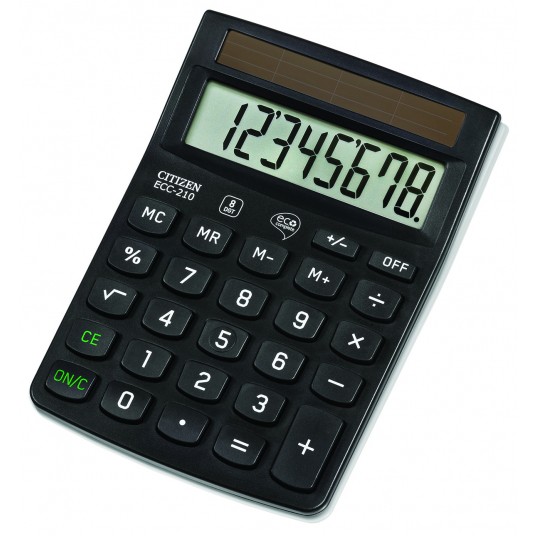 - Kalkulator z 8-cyfrowym wyświetlaczem - Zasilany baterią słoneczną - Stały kąt nachylenia wyświetlacza - Wymiar: 143x102x30mm - Funkcja pierwiastka kwadratowego oraz obliczania procentów - Wyposażony w klawisz zmiany znaku - Wyłącza się automatycznie - Certyfikat: Blue Angel eco-certificate - 2 lata gwarancji