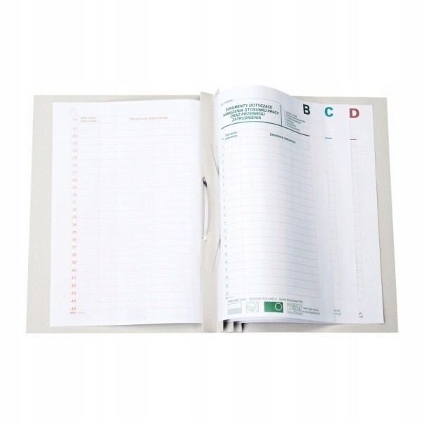 - Teczka wykonana z wysokiej jakości bezkwasowej tektury o gramaturze ok 320 g/m2 klasy GD2-GC - Dwustronnie zadrukowane przekładki A, B, C, D o gramaturze 90 g/m2 z ekologicznego papieru offsetowego z opisem tematycznie segregowanych dokumentów akt osobowych - Plastikowy docisk dokumentów zabezpiecza przed skaleczeniem - Niezbędna w każdym dziale personalnym, każda sztuka posiada jednostkowy kod kreskowy