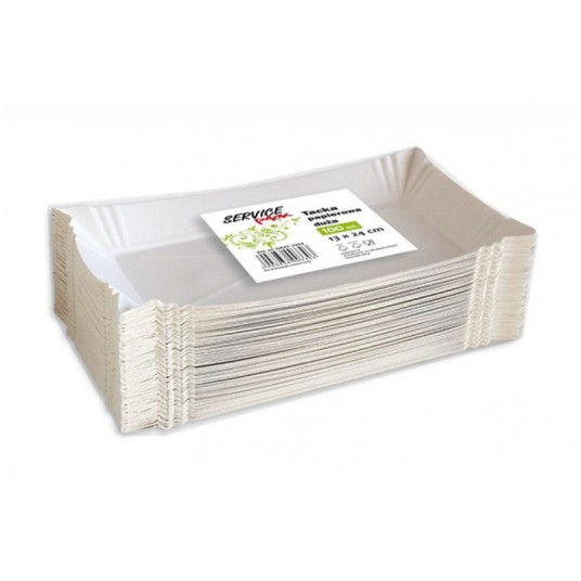 - Służy w gastronomii jako tacka, na której można podawać ciasta, torty i inne produkty- Może służyć także do podawania potraw z grilla- Wymiary: 14 x 24 cm- Opakowanie zawiera 100 sztuk