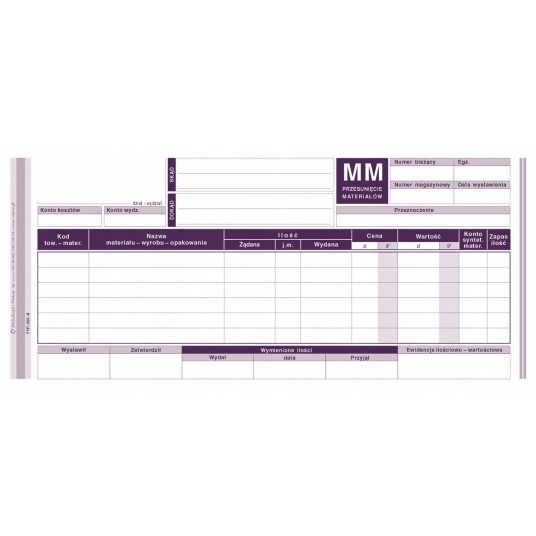 Druk mm przesunięcie materiałów M&P
