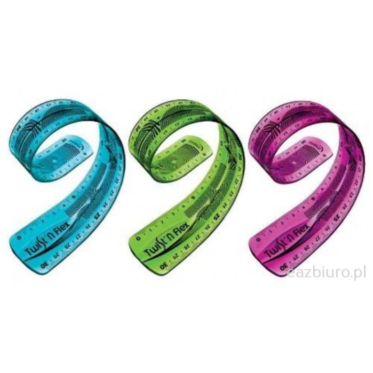 - Linijka TWIST'N FLEX, giętka, niełamliwa w pełni odporna na złamania, - Skala po obu stronach - Miks kolorów: zielony, różowy, niebieski. - Długość: 15 cm.