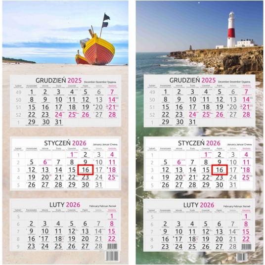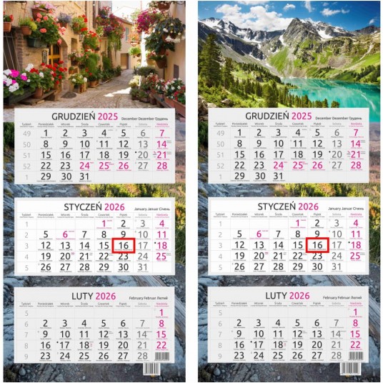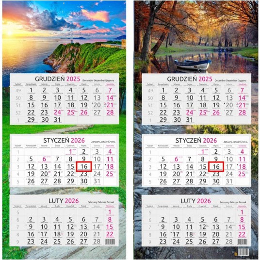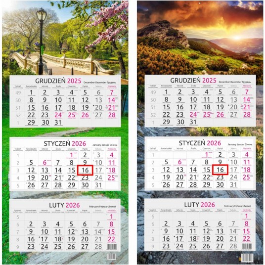 Kalendarz tródzielny mix wzorów -- towar sezonowy dostępny tylko do wyczerpania stanów