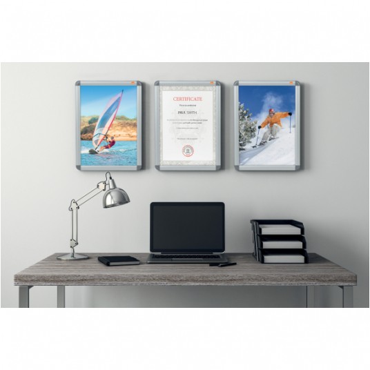 - Antyodblaskowa osłona ochronna z PVC - Wodoodporna aluminiowa konstrukcja przystosowana do użytku wewnątrz i na zewnątrz budynków - Wygląd dopasowany do ram ściennych Nobo Clip zapewnia możliwość utworzenia kompletnego systemu prezentacji - W komplecie z uchwytami do montażu - Rama zatrzaskowa w formacie A2 - idealna do prezentacji ogłoszeń, menu i innych informacji