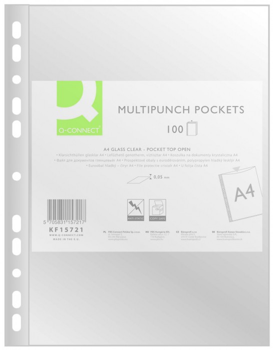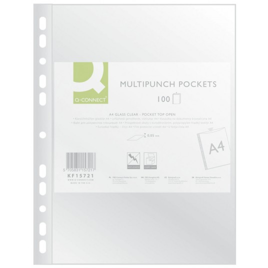 Koszulki na dokumenty Q-Connect, pp, A4, krystal, 50 mikr., 100 sztuk