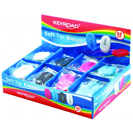 Gumka uniwersalna Keyroad soft tip, pakowane na displayu, mix kolorów