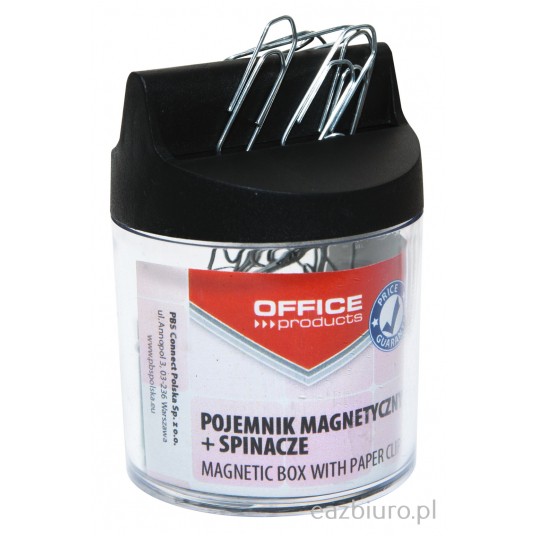 Pojemnik magn. na spinacze Office Products, okrągły, ze spinaczami, transparentny