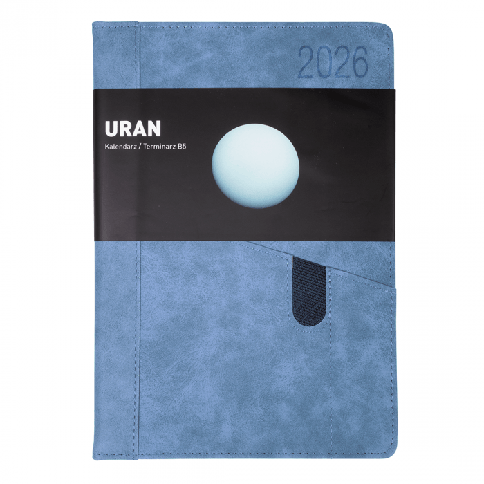 Kalendarz B5 książkowy Uran niebieski 2026-- towar sezonowy dostępny tylko do wyczerpania stanów