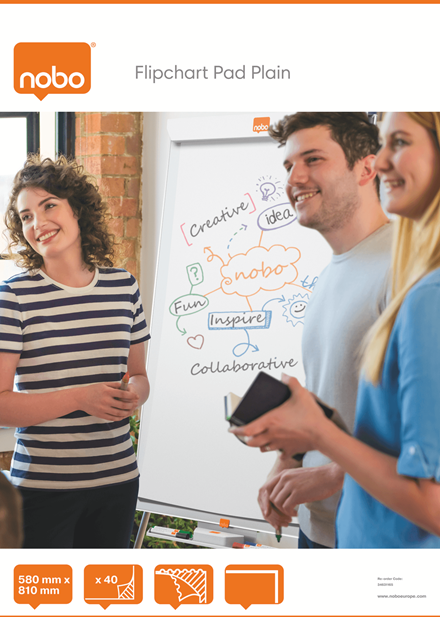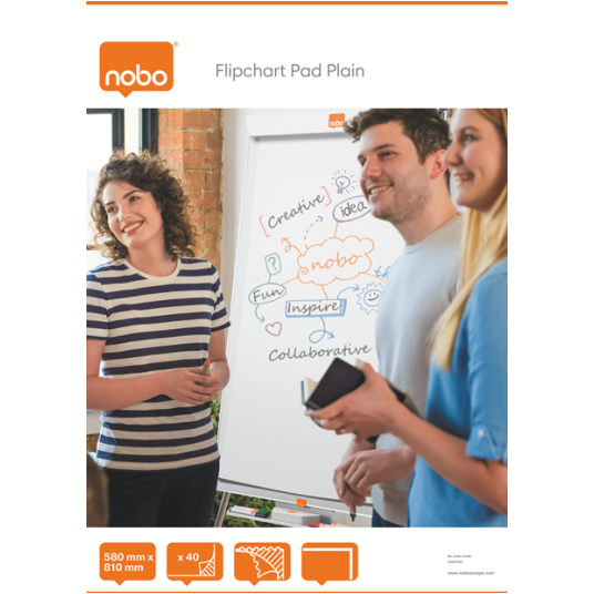 - Papier perforowany dla łatwego odrywania - Arkusze papieru o wymiarach 580 x 810 mm - Zwykły papier - 40 arkuszy - Papier TMP o gramaturze 60 g / m2 - Łatwe w użyciu ze sztalugami Nobo Flipchart