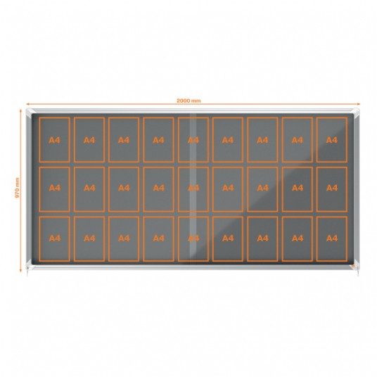 - Rozmiar: 27 kartek A4, 2000 x 970 mm zamykana gablota ogłoszeniowa, gablota ogłoszeniowa, gablota, zamykana przeszklona gablota, szklana gablota
