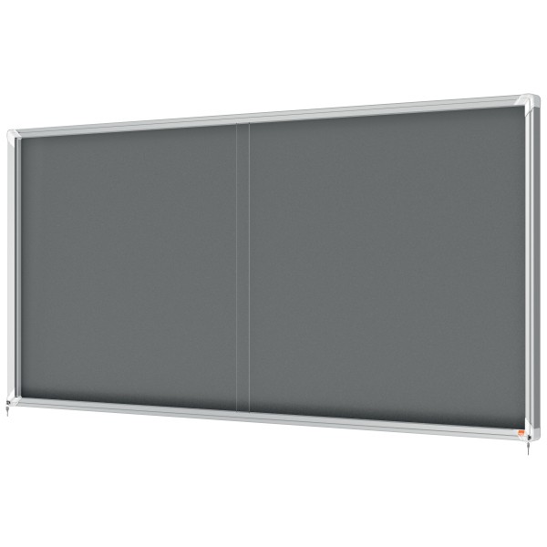 - Filcowa gablota ogłoszeniowa ze szklanymi przesuwanymi drzwiami i dyskretnym narożnym zamkiem na klucz, obramowana nowoczesną, stylową aluminiową ramą, zapewni Ci idealną powierzchnię do przypinania i bezpiecznego eksponowania przygotowanych informacji