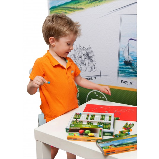 - Pastele olejne najwyższej jakości intensywnie nasączone barwnikami. - W każdym pudełku narzędzie do drapania rysunku. - Bardzo dobre mieszanie kolorów dzięki późno osiągalnemu efektowi woskowania. - Każda pastela w ochronnej papierowej obwolucie. - Do wyboru 2 designy opakowań.