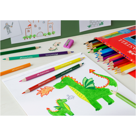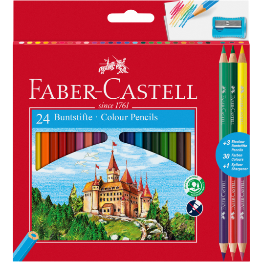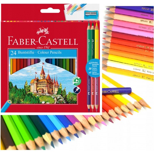 Kredki zamek 24 kolory + 3 kredki dwustronne + temperówka Faber-Castell