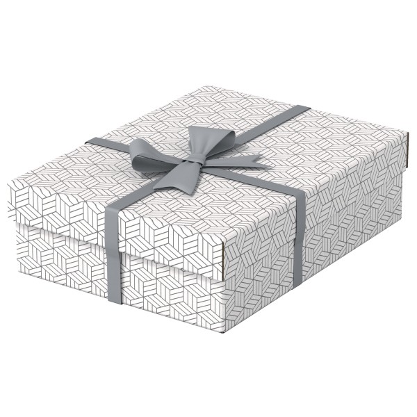 - Neutralne kolory i deseń dopełnią wystrój każdego wnętrza i pozwolą na łatwe dopasowanie pudełka do prezentu