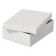 - Zdejmowana pokrywa pozwala na ukrycie zawartości pudełka i jego zamknięcie