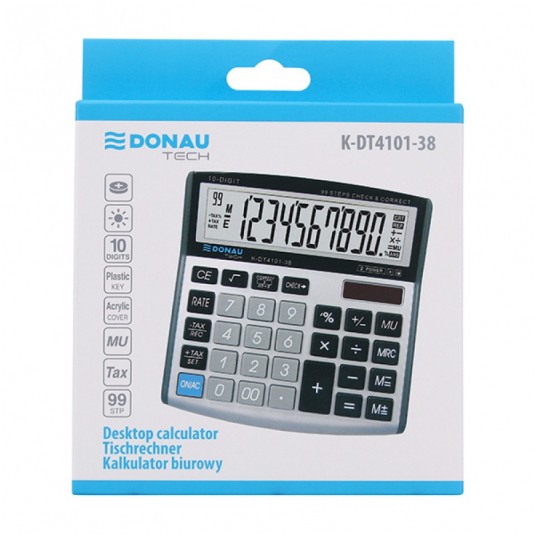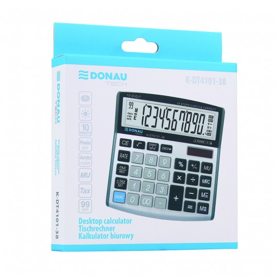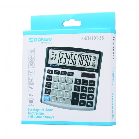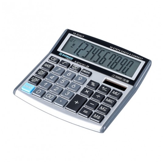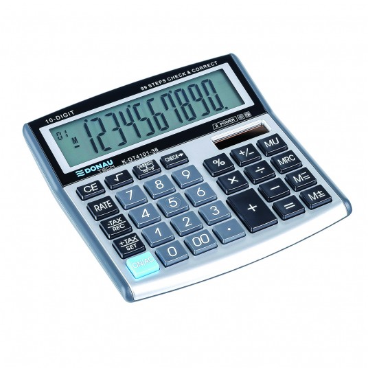 - Kalkulator biurowy z 10-cyfrowym wyświetlaczem z zasilaniem bateryjno-solarnym - Wymiary: 136 x 134 x 28 mm - Funkcja pierwiastka kwadratowego oraz obliczania procentów, obliczanie marży MU, obliczenia podatkowe TAX=+ TAX- , sprawdź i popraw CHECK & CORRECT, podwójne zero, kasowanie ostatniej pozycji, pamięć - Wyłącza się automatycznie - 5 lat gwarancji - Kolor: srebrny