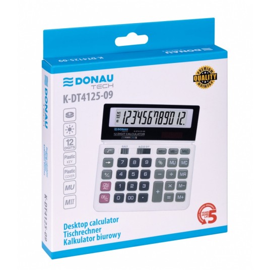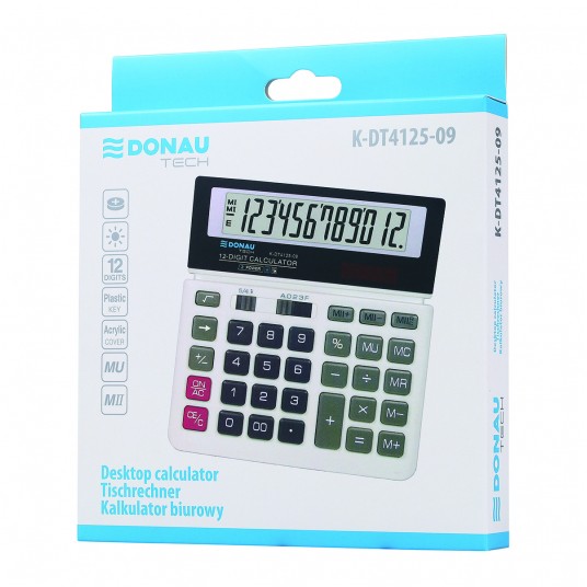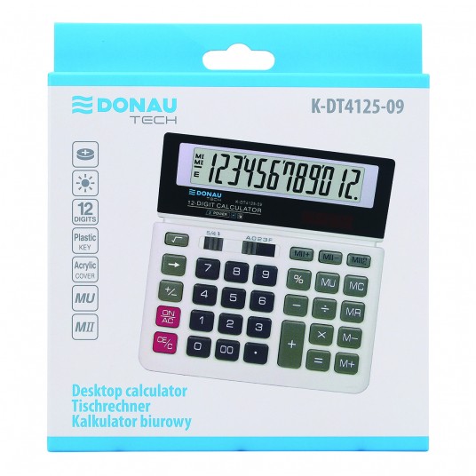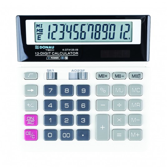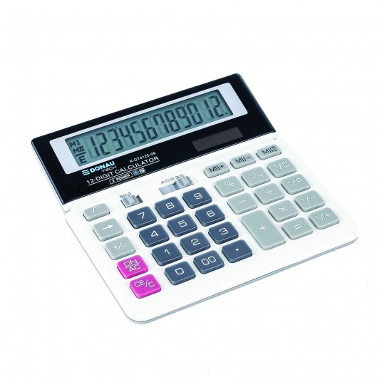 - Kalkulator biurowy z 12-cyfrowym wyświetlaczem z zasilaniem bateryjno-solarnym - Wymiary: 156 x 152 x 28 mm - Funkcja pierwiastka kwadratowego oraz obliczania procentów, obliczanie marży MU podwójne zero, kasowanie ostatniej pozycji, pamięć, ustawienie dziesiętne, zaokrąglanie wyniku, kasowanie ostatniej pozycji - Wyłącza się automatycznie - 5 lat gwarancji - Kolor: biały