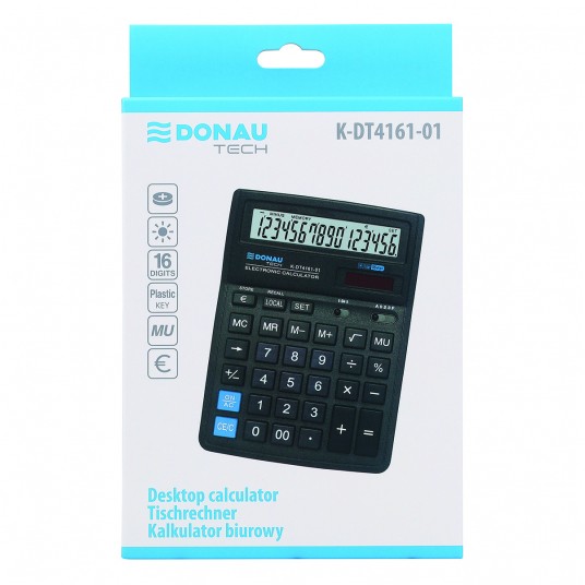 - Kalkulator biurowy z 16-cyfrowym wyświetlaczem z zasilaniem bateryjno-solarnym - Wymiary: 199 x 153 x 31 mm - Funkcja pierwiastka kwadratowego oraz obliczania procentów, obliczanie marży MU podwójne zero, kasowanie ostatniej pozycji, pamięć, ustawienie dziesiętne, zaokrąglanie wyniku, konwersja walut - Wyłącza się automatycznie - 5 lat gwarancji - Kolor: czarny