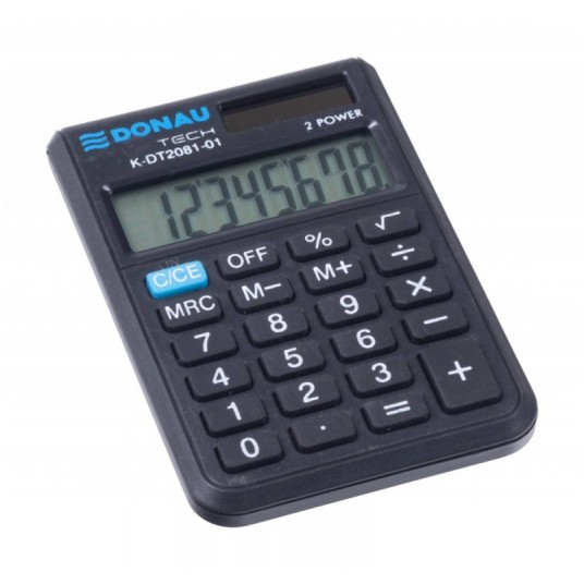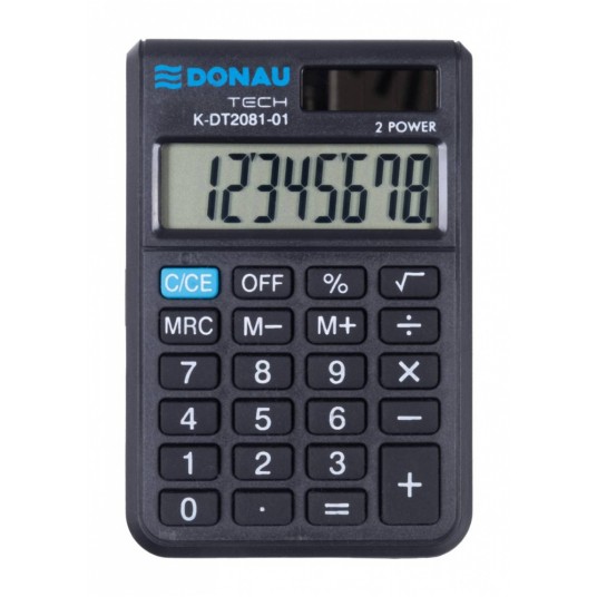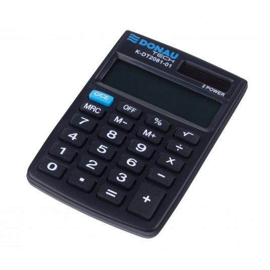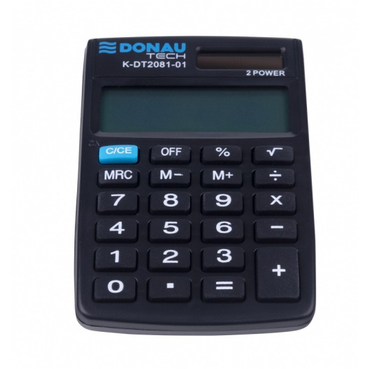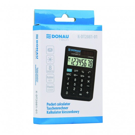 - kalkulator kieszonkowy z 8-cyfrowym wyświetlaczem z zasilaniem bateryjno-solarnym - wymiary: 90 x 60 x 11 mm - funkcja pierwiastka kwadratowego oraz obliczania procentów - wyłącza się automatycznie - 5 lat gwarancji - kolor: czarny