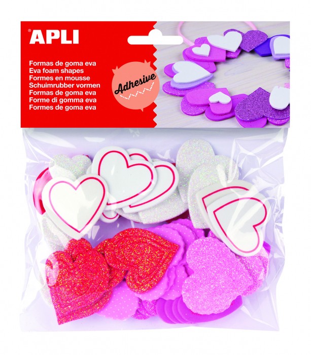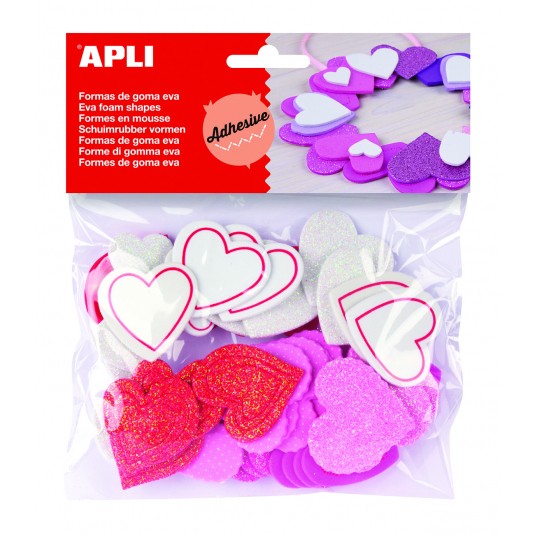 Naklejki Apli eva, z brokatem, serce, 52 szt.