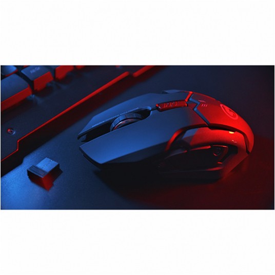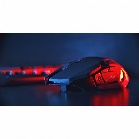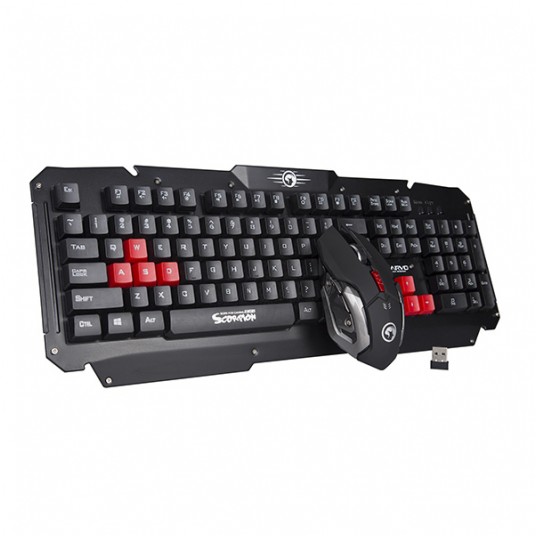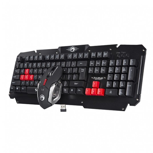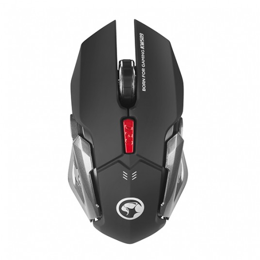 - Bezprzewodowy zestaw gamingowy Marvo KW509 z układem CZ/SK idealny dla tych, którzy cenią sobie swobodę oferowaną przez bezprzewodowe urządzenia peryferyjne, zestaw KW509 składa się ze wszystkich niezbędnych urządzeń do przyjemnego użytkowania - Bezprzewodowy zestaw gamingowy Marvo KW509 składa się z klawiatury membranowej z układem klawiatury CZ/SK oraz myszy optycznej - Dołączona klawiatura jest polecana jako prawdziwe centrum dowodzenia i kontroli, ponieważ jest wyposażona w funkcje multimedialne i dedykowane - Klawisze WASD do gier, wszystkie klawisze „chronione” eleganckim metalowym panelem przednim - Zestaw działa w technologii bezprzewodowej 2,4 GHz i komunikuje się z komputerem za pośrednictwem odbiornika USB 2.0 - Zakres działania zestawu wynosi do 10 metrów - Klawiatura zawiera klawisze multimedialne uruchamiane za pomocą klawisza funkcyjnego FN - Mysz ma ergonomiczny kształt, posiada sześć przycisków, a gracz może wybrać rozdzielczość w zakresie 800/1200/1600 DPI - Mysz wyposażona w czujnik optyczny z regulowaną maksymalną rozdzielczością 1600 DPI to inspirujący wybór zarówno do zwykłych aplikacji na komputery PC, jak i do krótkich, swobodnych rozgrywek, mających na celu relaks i oderwanie się od codziennej rutyny - Posiada sześć przycisków, a gracz może wybrać rozdzielczość w zakresie 800/1200/1600 DPI Dołączony do zestawu bezprzewodowy mini-nadajnik 2,4 GHz zapewnia niezawodną pracę klawiatury i myszy na odległość do 10 metrów - W zestawie znajdują się baterie Powerton: 1 x AA, 2 x AAA - SPECYFIKACJA TECHNICZNA KLAWIATURY: - Układ klawiszy: CZ/SK - Liczba klawiszy: 104 - Rodzaj klawiatury: membranowa - Żywotność klawiszy: do 10 milionów kliknięć - Skok klawiszy: 4 ± 0,3 mm - Baterie: 2 x AAA - DANE TECHNICZNE MYSZY: - Czujnik: optyczny - DPI: 800 - 1200 - 1600 - Liczba przycisków: 6 - Żywotność przycisków: 3 miliony kliknięć - Baterie: 1 x AA
