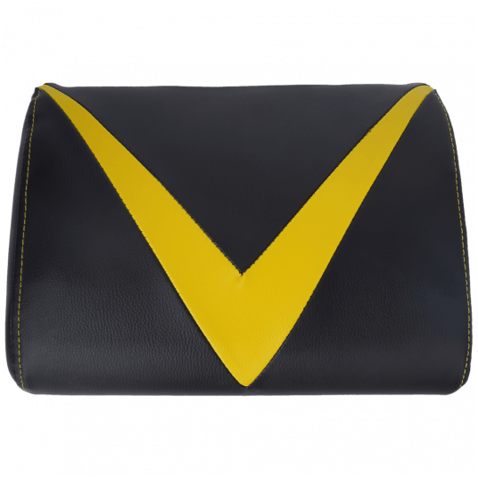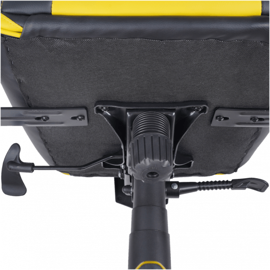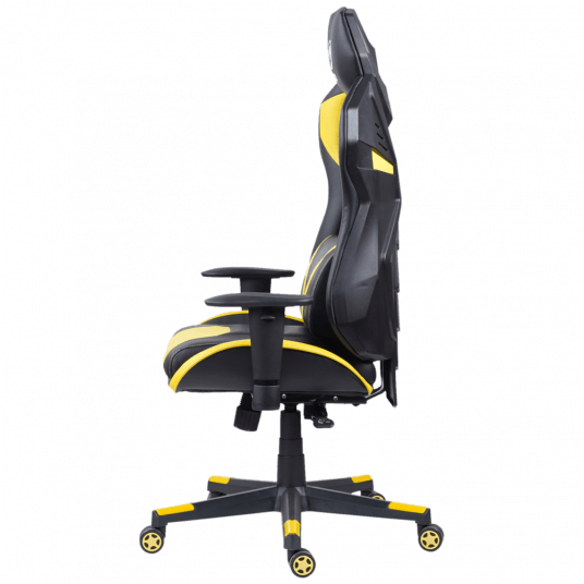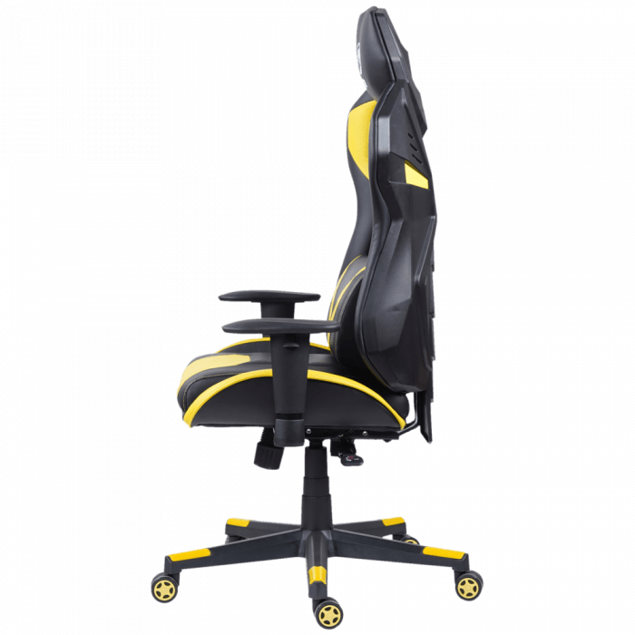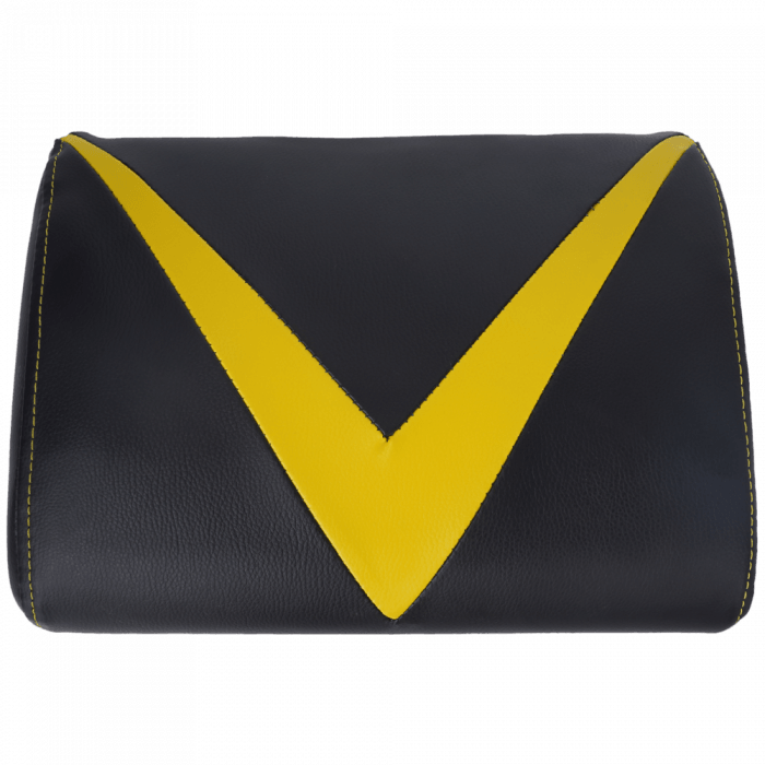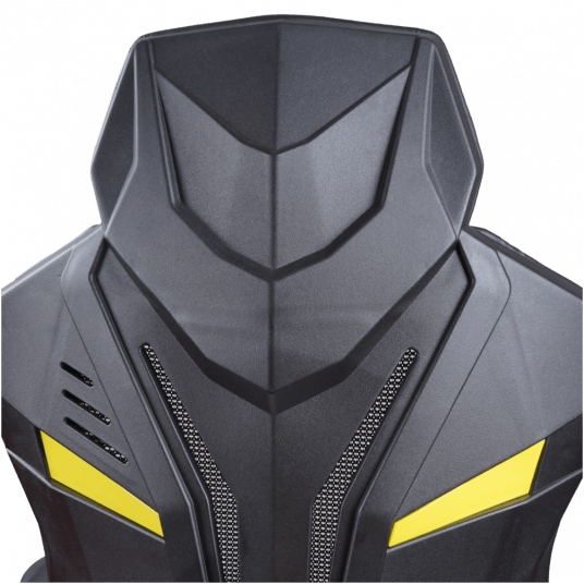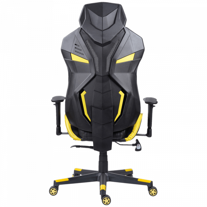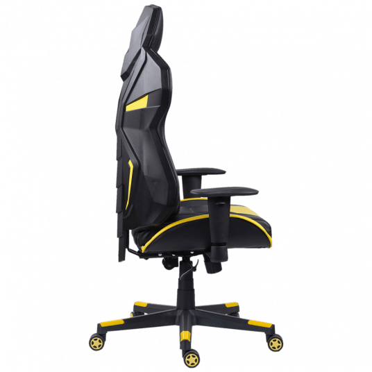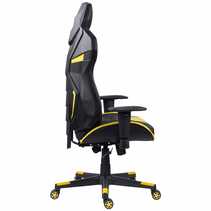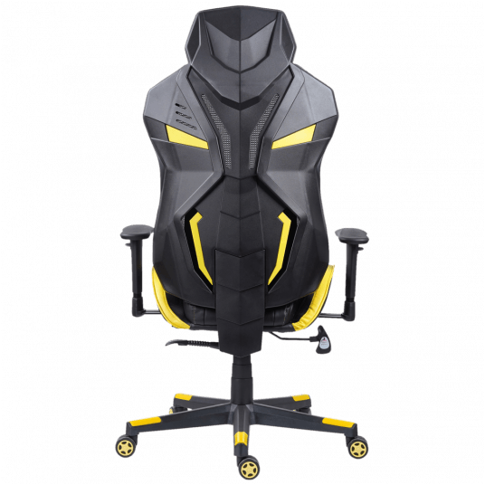 - Żółte detale wykończenia, wysoka poduszka lędźwiowa nadają fotelowi sportowego charakteru