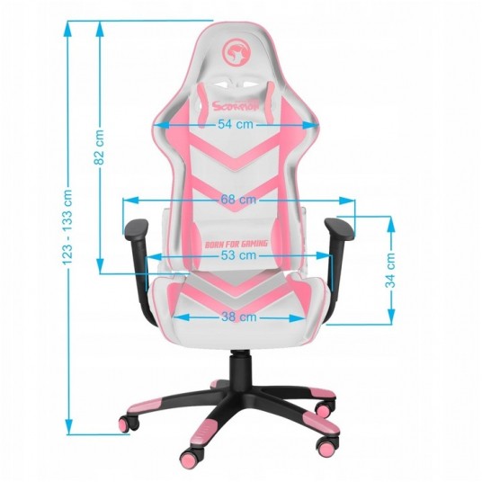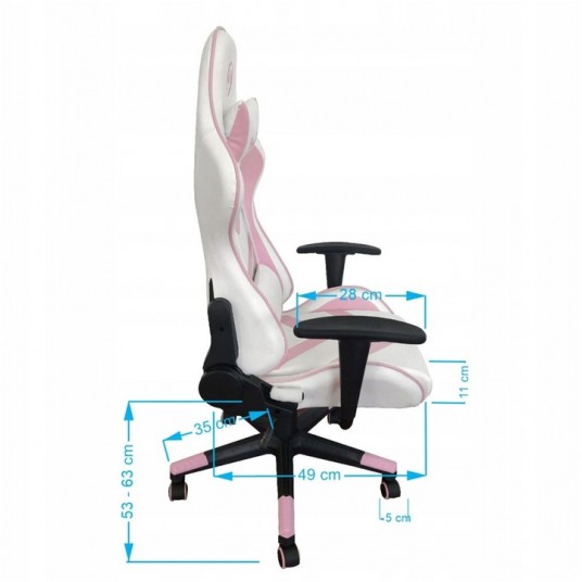 - Fotel gamingowy Marvo CH-106 Różowo-biały - Komfort podczas gry często przekłada się bezpośrednio na efekty rozgrywki - Wielogodzinne emocjonujące rozgrywki mogą być sporym obciążeniem dla gracza, dlatego warto zadbać o wygodę i bezpieczeństwo swojego ciała - Marvo CH-106 został wykonany z najwyższej jakości materiałów - Wytrzymała i stabilna podstawa nylonowa, kółka z PU i podłokietniki z PVC gwarantują długą żywotność i stabilność, a powierzchnia z syntetycznej skóry zapewnia wygodę niezależnie od sytuacji - Marvo CH-106 ma regulowany kąt nachylenia oparcia, który docenią zwłaszcza gracze, którzy potrzebują czasem odpoczynku w czasie wielogodzinnych rozgrywek - Oparcie można odchylić o 90 stopni, natomiast wyjmowane wkładki mają za zadanie zapewnić pełną regulację w zależności od potrzeb - Materiały: PU, PVC - Wysokość krzesła: 129-139 cm - Szerokość oparcia: 57 cm - Wysokość oparcia: 85 cm - Wysokość podłokietnika: 34 cm - Szerokość siedziska: 53 cm - Głębokość samego siedzenia: 50 cm - Wysokość siedziska: 44 - 54 cm (regulacja 10 cm dzięki tłokowi podnoszącemu) - Maksymalne obciążenie: 150 kg - Waga: 14 kg