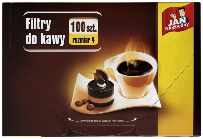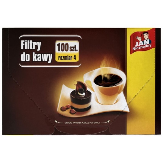 - Dzięki używaniu filtrów do kawy przygotowany napój zachowuje odpowiedni do gatunku kawy smak i aromat, jest wolny od fusów i - co najważniejsze - zawiera mniej substancji drażniących w porównaniu z kawą parzoną tradycyjnie. - Rozmiar filtrów jest dopasowany do wielkości dostępnych na naszym rynku przelewowych ekspresów do kawy. - Wykonane ze specjalnego białego papieru celulozowego o długich włóknach, który umożlwia przenikanie płynu, zachowując swoją strukturę - Zapewniają przygotowanie naparu o naturalnym smaku i niepowtarzalnym aromacie - Pozwalają na uzyskanie mocniejszego naparu z mniejszej ilości kawy - Sprawiają, że parzona kawa nie zawiera niepotrzebnych fusów - Kolor biały - Rozmiar 4 - 100 sztuk w opakowaniu
